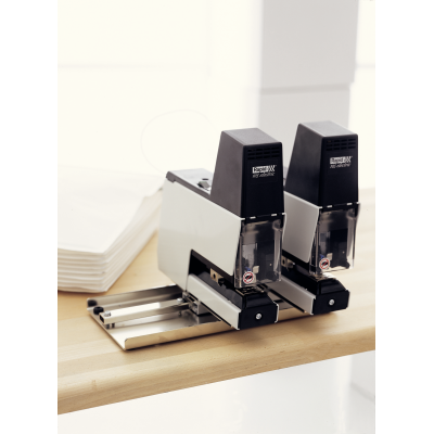 - Permite acoplar dos o más grapadoras para el grapado simultáneo.